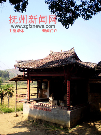 在古井南侧,在两棵古樟树的掩映下,一座单檐,屋脊和垂脊各有戏曲人物堆塑,门窗栏杆彩塑花鸟鱼虫,雕饰精美的明清时期古戏台出现在人们面前。在斑驳的戏台木板墙上,隐约看到“光绪二十八年”和“开天门”等一些墨笔字。记载的是当年戏班上演的时间、剧目和艺人姓名。