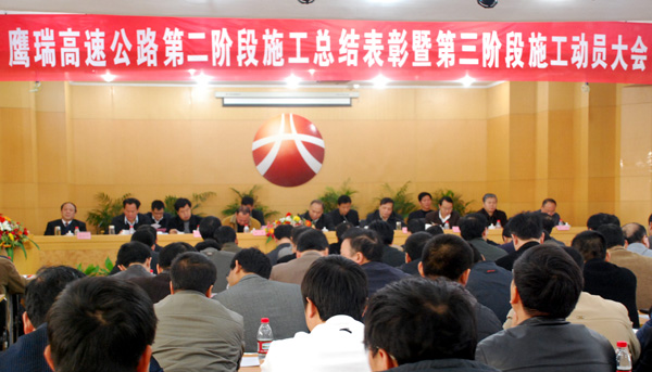 12月4日,鹰瑞高速公路第二阶段施工总结表彰暨第三阶段施工动员大会在南丰县召开,标志着鹰瑞高速公路建设最后冲刺的总攻战役已经打响。省委常委、常务副省长凌成兴出席会议并讲话。省交通运输厅厅长马志武,省政府副秘书长朱希,省交通运输厅副厅长许润龙,省交通运输厅党委委员、省公路局局长曹先扬,省重点办副主任傅江斌出席会议。省发改委党组成员、省重点办主任王前虎主持会议。市委常委、常务副市长谢发明等鹰瑞高速公路沿线设区市政府领导作了发言。