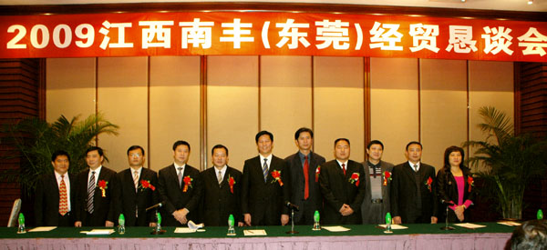 12月16日下午,在广东东莞市厚街镇嘉华大酒店,能容纳200多人的会议室座无虚席,南丰(东莞)经贸恳谈会在这里举行的消息吸引了来自广州、东莞、深圳等地的许多客商。恳谈会取得很好的成效,会议现场签约项目就有8个,签约资金达到7.48亿元。