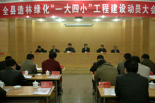 会议要求:今冬明春的造林绿化“一大四小”工程,一是要提高认识,切实增强责任感。全县上下要从贯彻落实科学发展观,加速南丰崛起、实现绿色发展的高度,围绕建设“生态桔都”的战略目标,进一步提高工程建设的责任感,不断增强自觉性和主动性。二是要明确任务,狠抓各项工作的落实。今冬明春全县工程建设的任务确定为3.62万亩。因此,各地要落实造林任务,绝不能造成任务悬空的现象,工程建设过程中,必须按地块和造林主体名单进行督查。要落实造林用地。各乡镇在2010年1月5日之前,按通道绿化“扩面增行”的要求,完成工程建设所征(租)用地,并以每亩不低于400元的标准给予合理的经济补偿。要落实造林施工队伍。采取机械化整地、专业化管护的方式,提高造林绿化质量。通道绿化前排的景观树将采取公开招标的方式进行管护,其它速生苗木将采取公开拍卖、租赁、转让等方式进行流转,流转收入专项用于工程建设。要落实造林苗木。做到适地适树,就近解决。林业部门要做好种苗采购、质量监督和苗木发放工作,确保品种对路、数量充足、质量合格。要落实资金投入。各乡镇要把工程建设经费纳入财政预算,县财政今年安排2000万元以上的资金用于工程建设。同时创新机制,吸引社会各界资金投入工程建设。要落实管护主体。切实解决“叫谁管、管得住、管得好”的问题,对管护不力的要更换主体,对还没有落实主体的要尽快落实。三是要突出重点,全力打造精品。高速公路、国省道、县乡公路的绿化,必须按上级规划的要求打造精品,12个自然村绿化样板村必须高标准起点。突出景观效益,工业园区重点打造2条精品园区路和3个以上的森林园林厂区。四是要强化领导,确保完成任务。做到各级领导一起抓,各个部门一起动,一以贯之抓落实。要督检、通报并重,促进造林进度。要响应县委、县政府提出的“奋战100天打好今年的造林绿化攻坚战”的号召,为建设“生态桔都”作出更大的贡献。