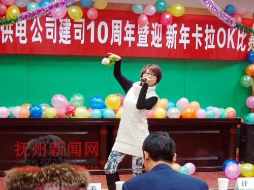 为庆祝2010年元旦 ,南丰供电公司工会举办迎新年卡拉OK比赛,来自公司机关和各基层单位的35名选手参加了比赛。比赛现场气氛热烈,台上高歌寄情,台下掌声迭起。(汪彬 田薇 摄)
