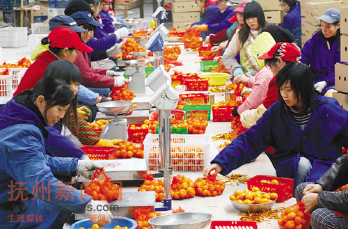 最近,南丰县微红果业公司每天都有100吨蜜桔销到东南亚、加拿大等海外市场。去年,该县强力推进销售队伍公司化运作,发展并引导20余家蜜桔自营出口企业通过GAP认证,加快了南丰蜜桔与国际市场对接步伐。目前,该县海外销售蜜桔1.5亿公斤,同比翻了一番。(特约通讯员 黄应国 摄)