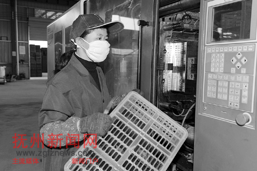 连日来,由上海客商投资5000万元创建的南丰县云龙塑业有限公司生产车间一片繁忙,生产红红火火。去年,该县围绕蜜桔产业,发展塑料包装制品企业,新引进并开工兴建大型塑料包装企业4家,已达到20家。(本报记者 万德辉 摄)