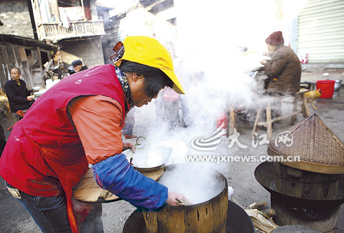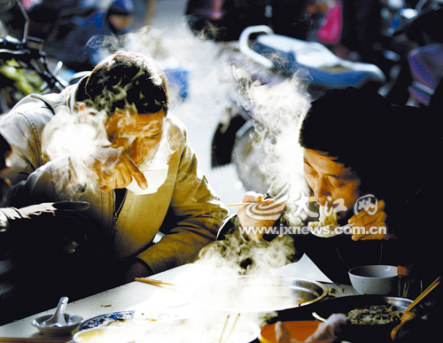 脆皮鸡、草熏鸭、油炸鱼、甜美酒还有那香甜可口的糯米饭和特色水粉……在南丰县老街,一些颇具地方特色的过年小吃,把满街香得年味十足。你瞧,路边那一桌桌一边喝着美酒,一边吃着长长米粉的人们,怡然自得,乐享悠闲,年虽未到却早已轻松地尽情享受年味。(本报记者梁振堂摄)