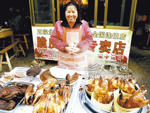 卖草熏鸭的美女