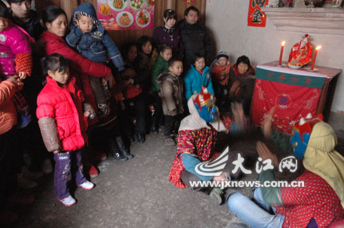 傩舞,是古代驱逐疫鬼祭祀仪式的一种巫舞,后成为一种流传于民间的驱邪、祈福、喜庆的舞蹈。每到春节期间,傩舞之乡南丰民间都有跳傩仪式,不少村民把傩神接到自己家里,表达祈福消灾的愿望。据了解,本次“百傩欢舞闹新春”活动,从大年除夕开始至正月十八日结束,连续活动19天,共有2000多名傩舞艺人参加,表演4000余场(次),力图将南丰的春节打造成名副其实的“乡村狂欢节”。(袁荣生、记者徐茜茜摄影报道)