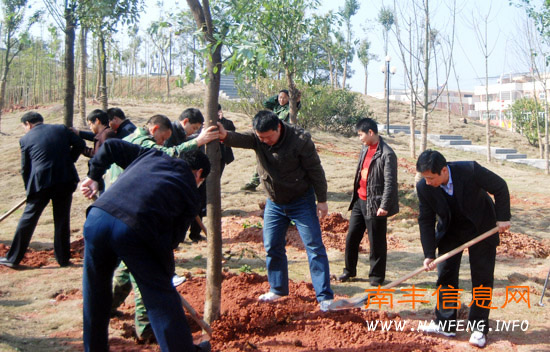 位于南丰县城区的琴台公园彩旗飘扬,人声鼎沸。上午9时许,该县县委书记傅清、县人大主任卢金国、县长祝宏根、县政协主席李履才等四套班子领导和各乡镇(场)、县委各部门、县直各单位的主要负责人来到植树示范点,与县林业局干部职工一道,参加植树造林活动。植树现场上,有的整地扩穴,有的扶正培土,有的踩紧浇水。他们尽情挥酒汗水,倾情奉献绿意。与此同时,在该县桔都公园、醒侬公园和各主要国省道路段,新春植树活动也全面展开。当日,该县参加植树造林活动近2000人,共栽植樟树、桂花、紫薇绿化大苗11000多株。