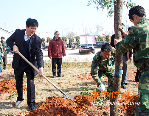 “积极策应鄱阳湖生态经济区建设,大力实施造林绿化 ‘一大四小’工程”、“植树造林利在当代功在千秋”……2月20日,新年上班第一天,南丰县四套班子领导植树团拜贺新春。