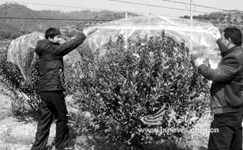 冻灾过后,该县抢抓气温回升的良好时机,积极组织干部群众全力恢复生产,重建桔园,及时对冻裂桔树进行捆绑、包扎,解除覆盖桔树的薄膜“冬衣”,同时做好桔园清沟、施肥等管理工作。桑田镇荷田岗村内朝门村小组村民欧阳新有2000余株桔树,为了支持他家蜜桔防冻,年前镇里免费发放塑料薄膜帮助他让桔树穿“冬衣”,正月初八,随着气温回升,欧阳新带着一家人为桔树“脱冬衣”,以确保桔树吸取阳光和新鲜空气,恢复正常生长。欧阳新高兴地说:“在党和政府的帮助下,我家的桔树得以安全过冬,保护了我家的‘绿色银行’,我对新的一年蜜桔丰收充满了信心。”