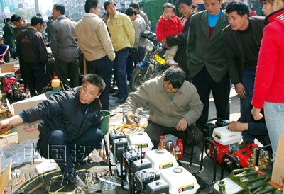 图为近日该县农民抓住晴好天气选购农机具,准备春耕生产。