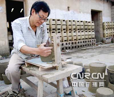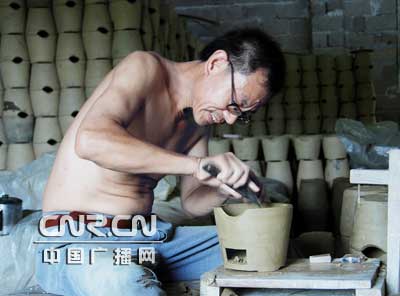 3月19日,制炉20多年的老师傅张西川正在修割炉坯。南丰泥炉百余年来一直为南丰一大特产。