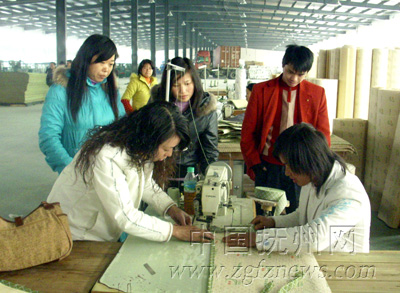 近日,落户于南丰县工业园区的江西振宇木竹制品有限公司的技术人员在对新员工进行培训。南丰县通过多种渠道帮企业招工,使企业能够开足马力生产。据了解,2月份以来,该县为园区企业招工2400多名。