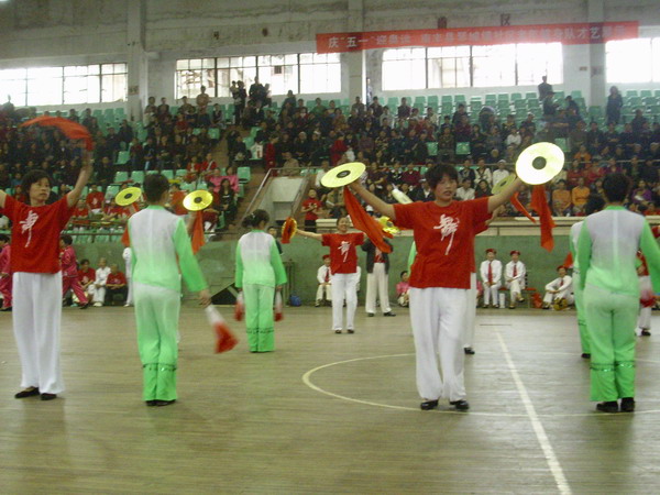 4月30日,南丰县老年体协在县体育馆举行“庆五一,迎奥运”社区老年健身才艺展示,来自全县21个社区健身队的400多名中老年人参加了这次活动。县老年体协主席谢二俚、顾问颜超华、副主席李轼才、熊信之、邓仁杰,琴城镇党委书记王友宗等领导出席了这次才艺展示活动。