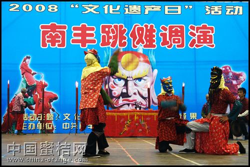 南丰傩舞具有二千多年的悠久历史,因其动作简朴、刚劲,保持了较多的原始风格,被誉为“中国古代舞蹈活化石”,二○○六年入选中国首批非物质文化遗产保护名录。目前全县共有一百一十多个傩班,留存有一百二十多个傩舞节目和三千余枚傩面具,其中以石邮村傩舞最负盛名。这次跳傩调演将评出“原生态表演奖”、“个人、集体优秀表演奖”、“创新表演奖”、“优秀组织奖”等奖项。