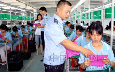 近日,南丰县工业园区派出所民警来到辖区内的伯特励电子公司向员工们散发安全提示宣传资料。该所针对辖区社区、乡村、企业不同特点,编印了防火、防盗、防抢、防骗及第二代身份证办理须知等10余种“110”安全提示宣传资料1.2万余份,免费发放给辖区群众,增强了群众安全防范意识和法律意识。