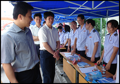 县委书记傅清、县委副书记、县政府负责人祝宏根、县委常委、常务副县长龙雪荣、县委常委、县纪检书记吴自胜也来到活动现场,看望了工作人员,并与他们亲切交谈。傅清要求工作人员要收集整理好群众所提的意见建议,有针对性地进一步改进工作,此次活动,既是请群众为各单位挑刺,更是一次促进提高的机会,力求做到机关作风明显改进,服务水平明显提升,办事效率明显提高,发展环境明显优化,干部能力明显增强。