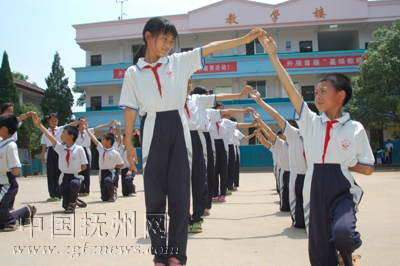 近日,在南丰县桑田镇中心小学,学生们在优扬的舞曲声中,手拉手跳起了由教育部创编的校园集体舞《好朋友》、《阳光校园》。该校十分重视学生素质教育,率先在学生中推广校园集体舞,有效地培养了学生审美情趣,增强了学生体质。