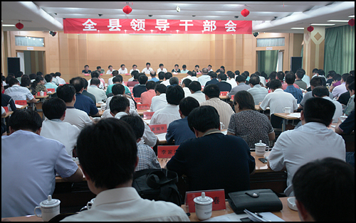 7月17日,全县领导干部暨经济形势分析会在县行政大厦七楼会议室召开。会议要求全县经济工作要以主攻三区为重点,项目建设为抓手,一切围着项目转,一切围着项目干,确保全年各项目标任务顺利完成。会上,19个重点经济部门分别就本部门上半年工作情况及下半年工作打算进行了发言。县委书记傅清,县委副书记、县长祝宏根到会并作重要讲话。县委副书记周战超、县政协主席李履才等在家的县四套班子领导出席了会议。