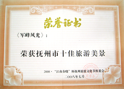 在2008年“江南春晓”杯抚州旅游文化节活动中我县选送的军峰山景区的“军峰风光”荣获“十佳旅游美景”称号,“南丰蜜桔”“南丰傩面具雕刻”荣获“抚州市十佳旅游美景特色产品”称号,我县选送的高航选手获得“抚州市十佳旅游形象大使”及“抚州市旅游形象大使季军”等荣誉。