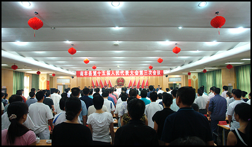 初秋时节,秋高气爽,处处生机勃发。8月27日上午,南丰县第十五届人民代表大会第三次会议在县行政大厦会议室隆重举行。来自桔乡大地各条战线的170多名县人大代表怀着喜悦的心情步入会场,带着全面落实科学发展观,全力建设“四新”南丰的满腔激情,代表30万儿女,履行人民代表的神圣职责。