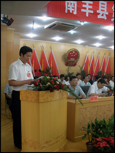 2008年8月29日上午,南丰县第十五届人民代表大会第三次会议胜利闭幕。本次大会应到代表172名,实到代表166名,经大会选举,祝宏根同志以全票当选为南丰县人民政府县长。何同文、张国强、罗国强、赵丽利、曾平武、熊晓娟6名同志当选为南丰县人大常委会委员。