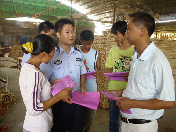 连日来,南丰县紫霄派出所民警深入辖区10余家木制品企业,对300多名企业员工开展以防火、防盗为主题的法制教育,确保残奥会期间安全。