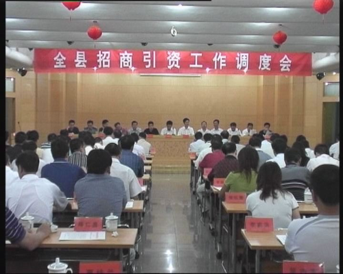 9月28日,全县招商引资工作调度会在县行政大厦召开,县委书记傅清、县长祝宏根与县四套班子领导一同参加了会议,县委副书记周战超主持会议。会议通报了我县1-9月份的招商引资情况。县林业局,县纪委、监察局的主要负责人分别作典型发言,县城管局主要负责人作了表态性发言,县委书记傅清、县长祝宏根分别对招商引资工作作了重要讲话。