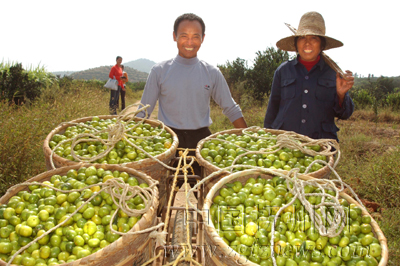 10月7日,南丰县桑田镇新圩上村的桔农喜收早熟蜜桔。今年南丰县蜜桔种植面积达50万亩,由于推广了测土配方施肥、生物治虫技术,挂果面积达35万亩,预计总产量将超过5亿公斤。