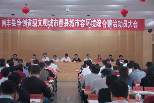 10月10日,全县“争创省级文明城市暨县城市容环境综合整治动员大会”在县行政大厦七楼会议室召开。县委常委、县政法委书记邓春水解读了“县城市容环境综合整治活动总体实施方案”,县委副书记、县长祝宏根出席会议并作重要讲话,各责任单位负责人先后作表态发言,大会由县委副书记周战超主持。