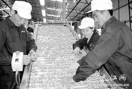 10月22日,在南丰县洽湾镇上店村,桔农正在用水果分选机分选蜜桔。今年,南丰蜜桔总产量超过5亿公斤,随着蜜桔进入大批量采摘时期,许多桔农纷纷购买选果机分选蜜桔,既缩短了分选时间,又缓解了劳动力紧缺的矛盾。