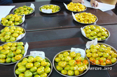 10月17日,江西省南丰蜜桔研究会2008年早熟南丰蜜桔复选评审会在南丰县蜜桔产业局举行。此次评审会的任务主要是根据江西省南丰蜜桔研究会“2007年南丰蜜桔品种改良项目”要求,对2007年初选的南丰蜜桔早熟类型单株、南丰蜜桔大果、小果和“十月红”品种优选单株进行全面系统的比较和鉴定,筛选遗传性基本稳定的优良单株。复选出品质优良、化渣、经济性状好的优良“十月红”单株,以便今后大力推广。