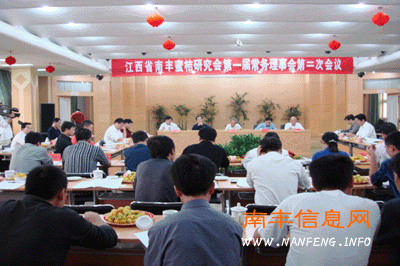 金秋十月,瓜果飘香。10月18日,江西省南丰蜜橘研究会第一届常务理事会第二次会议在南丰县人民政府行政中心会议室召开。原省委常委、省农工委书记彭崑生、原省人大常委会环境资源委员会主任委员王飙、省农业厅厅长毛惠忠、抚州市人大常委会主任罗建华、省农业厅副厅长张忠平、江西农业大学教授邓毓华、省农业开发办主任章康华、省水利厅副厅长朱来友、抚州市人民政府副市长黄赛荣、省经济作物局局长程锦、省农业厅产业化处处长傅近、省林业厅造林处处长张勇、省农业开发办项目处处长陈春平、省农业科学院园艺所所长黄建民、抚州市农业局局长帅歌柳、抚州市农业局党委书记徐建云、南丰县人民政府县长祝宏根、省经济作物局副局长邱春娇、省财政厅农业处副处长万程、抚州市果业局局长袁越越、南丰县人民政府副县长许建勤等领导和专家以及来自省商检、省科技厅、省农业大学、南丰县蜜橘产业局、南丰县农业局的第一届江西省南丰蜜橘研究会常务理事共32人出席会议,会议由南丰蜜橘研究会副理事长张忠平主持。 会议分别听取了南丰县人民政府县长祝宏根所作的《南丰县蜜橘产业发展情况通报》和研究会副秘书长邱春娇代表理事会所作的《江西省南丰蜜橘研究会2008年度工作情况通报》。与会代表还就当前南丰蜜橘产业所面临的机遇和挑战以及应当采取的对策进行了充分的研讨。最后,名誉理事长彭崑生和理事长毛惠忠分别就如何发挥好学会的科技、人才等优势,促进金牌的南丰蜜橘产业发展作了重要讲话。