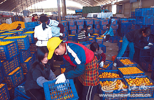 如今在这里已建起交易面积达10万平方米的蜜桔大市场,交易环境和条件大为改善。采摘旺季,每天从这里销往全国各地的蜜桔逾3000吨(上图)。(江西日报记者万基耀摄)