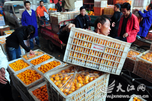 时下正是南丰蜜桔大量上市的季节。14日,记者在南昌(深圳)农产品批发市场见到,来自南丰的蜜桔占了水果市场的半壁江山,许多农户开始进城直销。来自南丰县官塘村的农户曾保山说,市场上有20%是农户自己出门来销售。