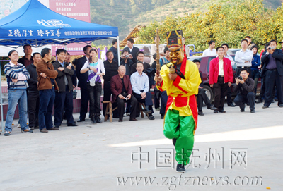 11月14日,来自省城的旅游者在南丰县市山镇包坊村生态桔园观看傩舞表演。眼下正是南丰蜜桔采果的旺季,越来越多的外地游客纷纷结伴前来南丰县旅游。该县趁势推出“采桔、品果、观傩”的特色农家乐旅游活动,每天接待外地游客近百人。