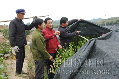 连日来,南丰县派出技术人员深入乡村,指导桔农做好蜜桔防寒防冻工作。目前,该县800多万株桔苗穿上了“冬衣”。