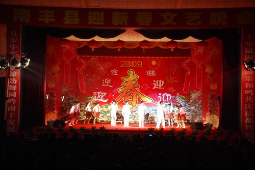演出前,县委书记傅清首先致词,向全县人民致以新春的祝福。随后,由江西省话剧团为在场观众奉献了一场高水平的演出。整场演出,节目编排合理,气愤隆重,喜庆,热烈,既有独唱,联唱,歌伴舞,也有诙谐有趣的喜剧小品,精彩的演出博得在场观众的阵阵掌声。