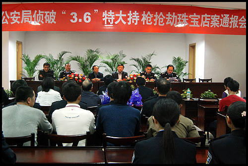 南丰县公安局召开“3.6”特大持枪抢劫珠宝店案案情通报会