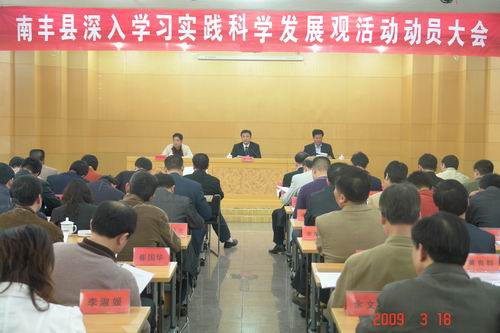 近日,南丰县按照中央、省市关于开展深入学习实践科学发展观活动工作的统一部署,组织全县各单位主要负责人共185人召开深入学习实践科学发展观活动启动大会,会议以全面贯彻党的十七大精神、邓小平理论和“三个代表”重要思想为指导,紧紧围绕党员干部受教育、科学发展上水平、人民群众得实惠的总体目标,进一步增强解放思想、实事求是、改革创新的体制、机制。从根本上改变与科学发展观不相适应的落后思想观念,提高领导科学能力,促进社会和谐发展。同时,把科学发展观贯彻落实到经济社会发展的各个方面。