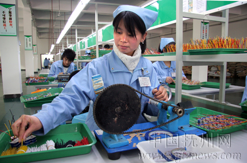 今年以来,落户南丰县工业园区的江西百特励电子科技有限公司积极实施精品名牌战略和过硬的企业管理,其产品聚合物锂离子、镍氢、镍镉充电电池及充电器等产品畅销欧洲、东南亚、中东等许多国家和地区。图为公司生产车间。