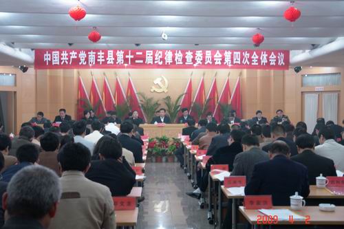 4月2日,中国共产党南丰县第十二届纪律检查委员会第四次全体会议召开。会议传达贯彻了中纪委十七届三次全会、省纪委十二届五次全会和市纪委二届四次全会精神,总结了去年全县党风廉政建设和反腐败工作,表彰了先进,研究部署了今年党风廉政建设和反腐败工作任务。县纪委委员,在家的县党政班子成员,县人大、政协主要领导,县法检“两长”,各乡镇党委书记、乡镇长,县工业园区管委会主任,县委各部门、县直及驻县各单位主要负责人,基层纪委书记(纪检组长)、监察室主任,县监察局副局长、县纪委各室主任,县监察局特邀监察员共200余人出席了会议。 全会由县长祝宏根主持。大会审议通过了县纪委书记吴自胜代表中共南丰县纪律检查委员会常务委员会所作的题为《落实科学发展观,完善惩防体系,为促进全县赶超发展提供坚强的政治保证》的工作报告。