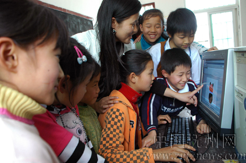 4月18日,地处军峰山脚下的南丰县三溪乡军峰村经纬希望小学的学生在老师的指导下利用电脑制作动画课件。今年春季,上海经纬设计公司向该校捐赠了10台电脑,中国移动江西南丰公司克服施工困难,专门为学校铺设了1.5公里“爱心光缆”并派技术人员安装调试,使该校成为全县第一个开设信息技术课同时又可以接受现代远程教育的农村小学。