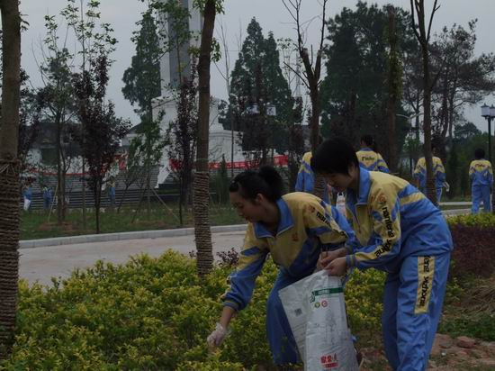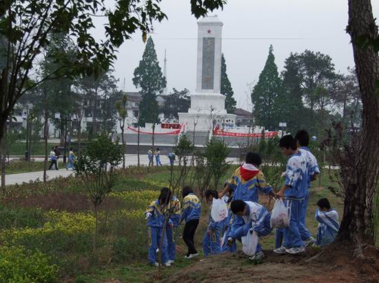 为纪念五四运动90周年,结合当前的学习实践科学发展观活动,“五四”前夕,,南丰县组织中小学生开展环保先锋行活动。活动期间,组织学生走上街头,向市民、青少年宣传环保意识,发放环保宣传1000多份资料。图为南丰一中学生在醒侬公园内捡垃圾的情景。