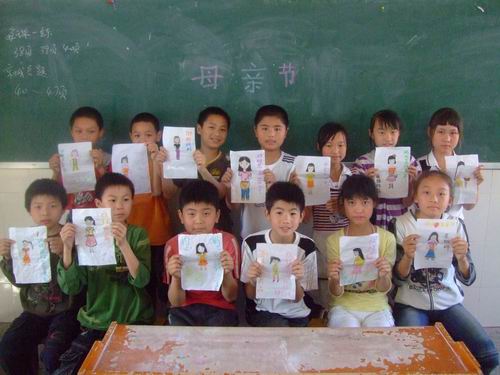 5月8日,南丰县子固小学开展以“我的漂亮妈妈”为主题的特色绘画课。学生们在老师的指导下,为妈妈画肖像,迎接即将到来的母亲节。图为该校五(2)班13名留守学生展示自己作品时的情景。