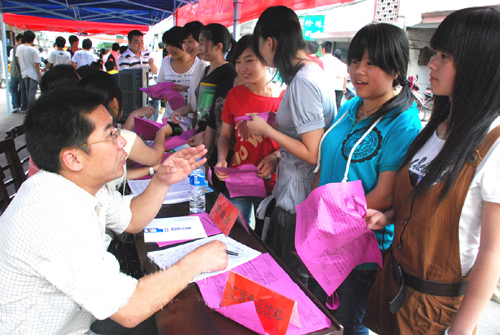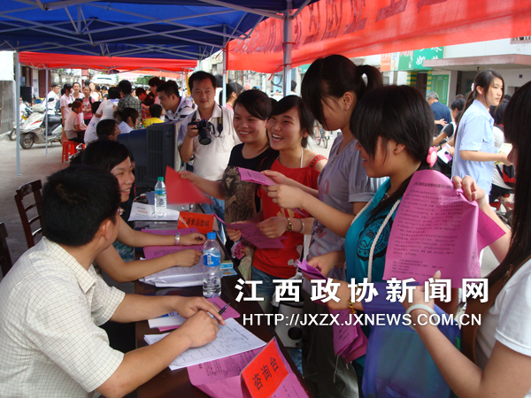 6月8日下午,根据政协委员关于为高考考生提供短期就业岗位的建议,江西省南丰县工业园区组织10余家急需短期员工的企业来到南丰一中考点,他们把500余个岗位送到学校,等待高考结束的考生来选择工作岗位,供需要充实假期生活、增强社会实践的学生挑选。