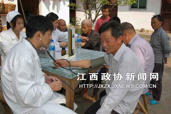 6月27日,江西省南丰县政协组织医卫界的委员来到太源乡敬老院,为孤老们开展健康体检、义诊服务。今年以来,南丰县政协在各位委员中广泛开展“奉献日”活动,全县医卫界20多名委员,经常利用休息时间,进行“奉献日”活动,深入地处偏远乡镇,开展送医送药下乡服务,发放卫生防疫资料3万多份,为1.2万多名农民群众开展健康体检、义诊,深受群众欢迎。