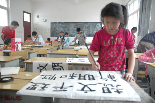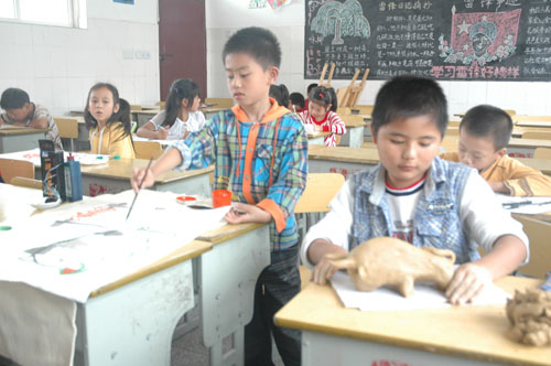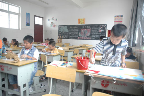 为了检验中小学素质教育成果,给学生一个展示自己艺术作品的平台,7月6日,南丰县举办第七届“新华杯”中小学生艺术节艺术作品现场展示活动,全县100多名中小学生参加了美术、书法、摄影、手工制作等现场展示活动。图为参赛者在绘制艺术作品。