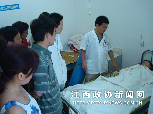 7月8日,南丰县政协教科文卫专委会组织医卫界委员视察该县中医药发展工作;委员们听取了县中医院领导介绍该县目前中医药发展取得的成绩和存在的问题,针对全县中医药发展中存在的困难和问题提出了建议,为切实把中医药这一传统医术发扬光大,做大做强中医药特色,面向农村、面向困难群体建言献策。图为政协委员正在县中医院骨科察看病人疗伤情况。