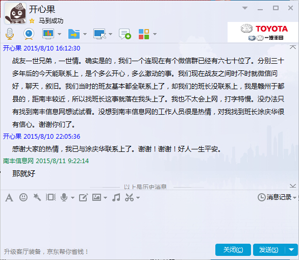 8月11日更新:寻找战友的消息通过本网站和南丰微信公众平台发出后,8月10日晚上10点,李先生告诉我们,说已经和他的班长涂庆华联系上了。