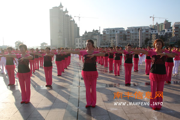 8月8日,全国第七个全民健身日。上午7时整,在南丰县老年人活动中心的广场上,当主持人一声号令,南北两个板块的中老年人,分别身着整洁统一的服饰,伴随着各自的音乐旋律,同时表演参展项目,展示自己和团队的魅力。本次活动由南丰县教育体育局和县老年体协举办,来自市山镇、琴城镇和县城社区的36支健身队伍共千名中老年朋友参加了这次展示。(封祖昌、黄建平)